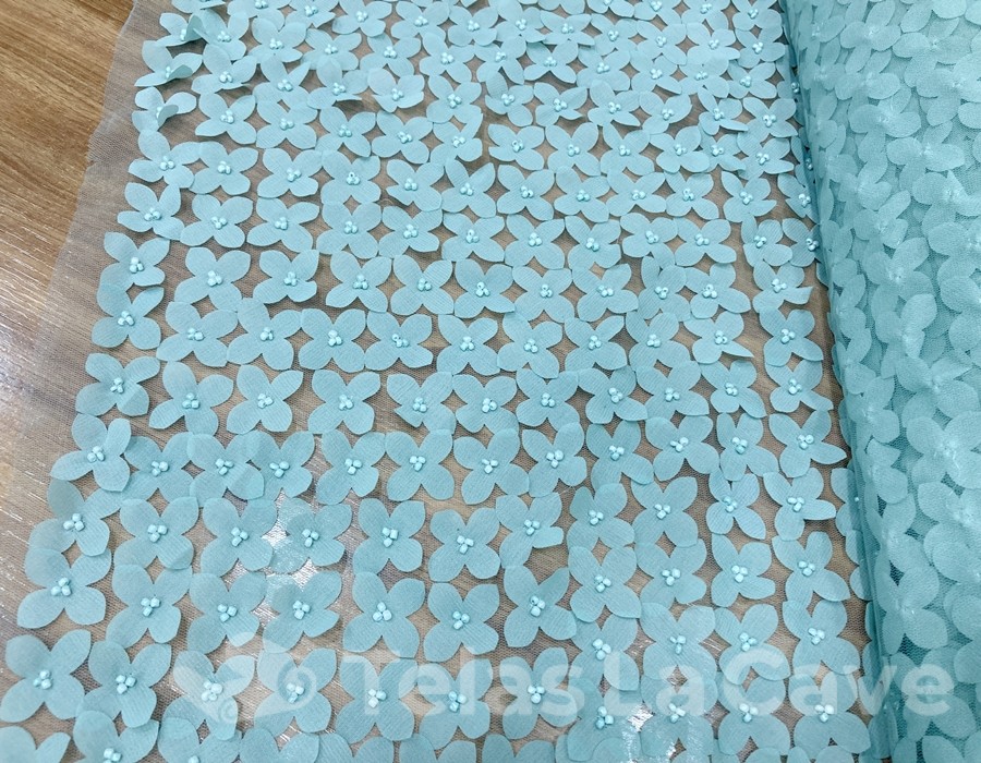 Serie: Bordado flor 3D con pedrería tipo relieve colores verde enpolvado y piedra modelo avenida